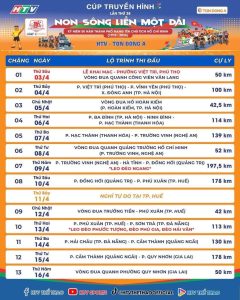 Cuộc đua xe đạp toàn quốc tranh Cúp Truyền hình Thành phố Hồ Chí Minh lần thứ 38 – 2026 xuất phát tại Khu di tích lịch sử Đền Hùng, tỉnh Phú Thọ và đi qua các tỉnh, thành phố: Thủ đô Hà Nội, Ninh Bình, Thanh Hoá, Nghệ An, Hà Tĩnh, Quảng Trị, Thành phố Huế, Thành phố Đà Nẵng, Quảng Ngãi, Gia Lai, Đắk Lắk, Khánh Hòa, Lâm Đồng, Đồng Nai, Thành phố Cần Thơ, Vĩnh Long, Đồng Tháp, Tây Ninh và kết thúc tại trước Hội trường Thống Nhất, Thành phố Hồ Chí Minh.